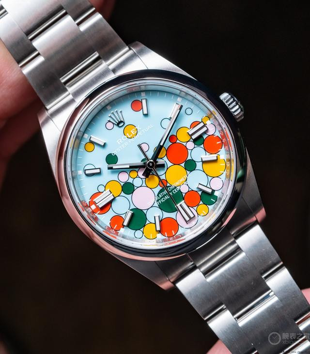 劳力士蚝式恒动,蒂芙尼蓝和庆典气球。 当然,作为新一代迪通拿,这只“蒂芙尼蓝盘”也拥有细长的炮弹字时标、带金属包边的陶瓷圈,以及新型4131自动计时机芯。说真的,这一个“蒂芙尼蓝”,真的能让这只表,甚至比珠宝款、陨石盘,更显眼,而获得它,您要付出很多很多。(图/文 腕表之家 炎弹平)