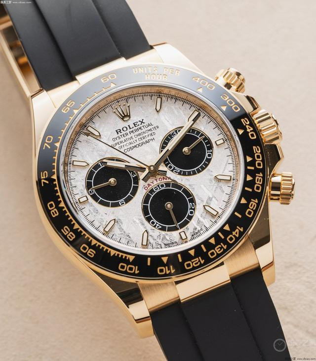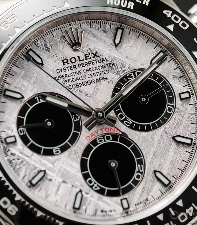 劳力士新型4131自动计时机芯。 第二只,劳力士迪通拿“陨石款”,公价339700起步。 今年(2025),劳力士迪通拿中的重量级新款,就是这只“陨石款”。新款“陨石盘面”迪通拿,包括黄金壳126518公价339700;玫瑰金壳126515公价355200;白金壳126519公价355200。