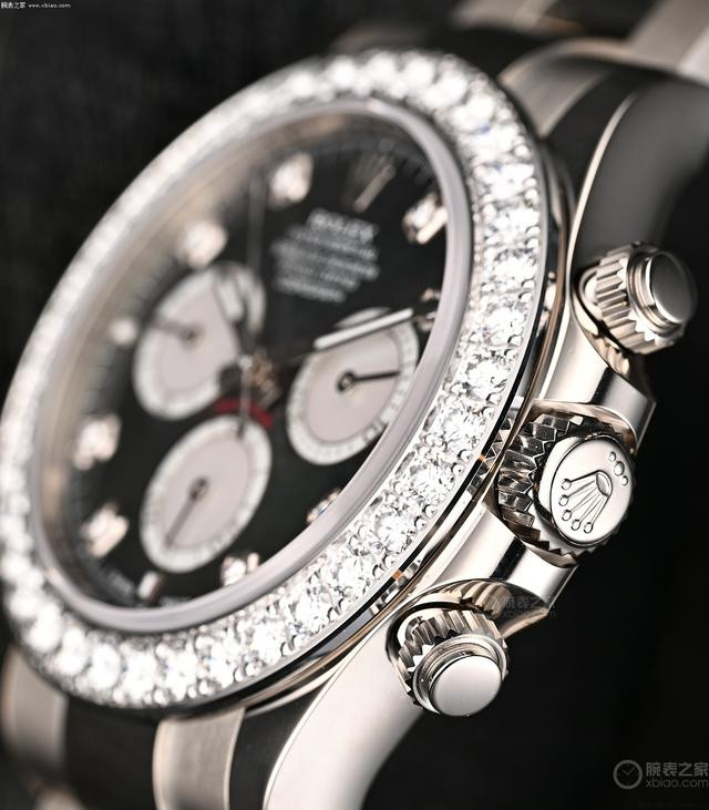 钻圈、钻刻细节。 自2023年,劳力士迪通拿完成更新换代,从上一代1165XX换代为新一代1265XX。在售的新一代迪通拿,尺寸依然是40毫米,但厚度再一次减薄。新一代迪通拿的厚度只有11.9毫米,加上进一步优化了表耳、表冠护肩造型,新款迪通拿绝对是市面上,厚度以及佩戴感受最佳的自动计时表之一。